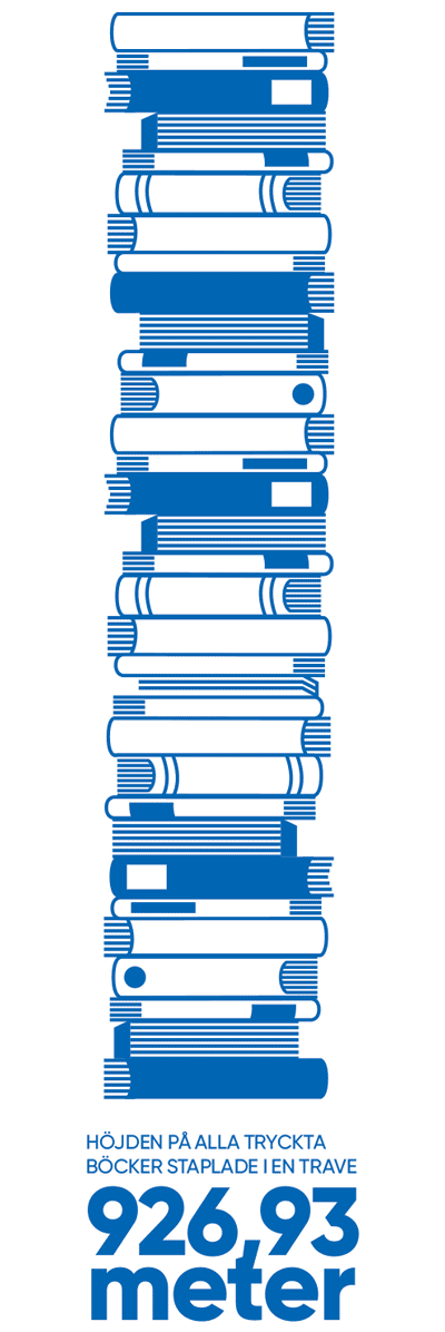 Om vi skulle stapla senaste årets tryckta böcker på varandra skulle bokstapeln bli 926,93 meter hög: